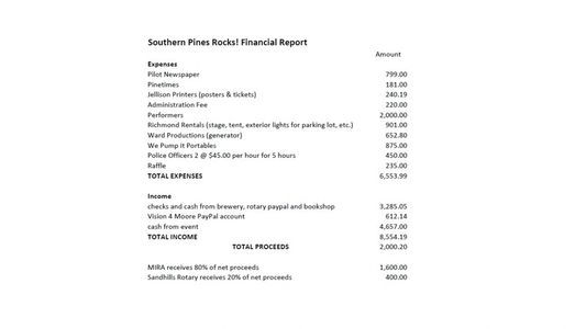 We are pleased to report that The MIRA USA Foundation received $1,600.00 and The Rotary Club of the Sandhills received $400.00 from this event!