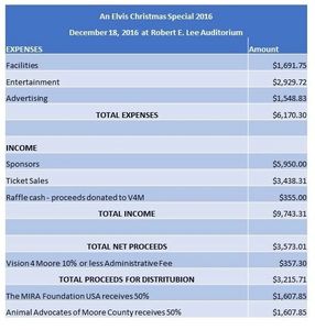 We are pleased to report that both The MIRA Foundation USA and Animal Advocates of Moore County received checks for $1,607.85